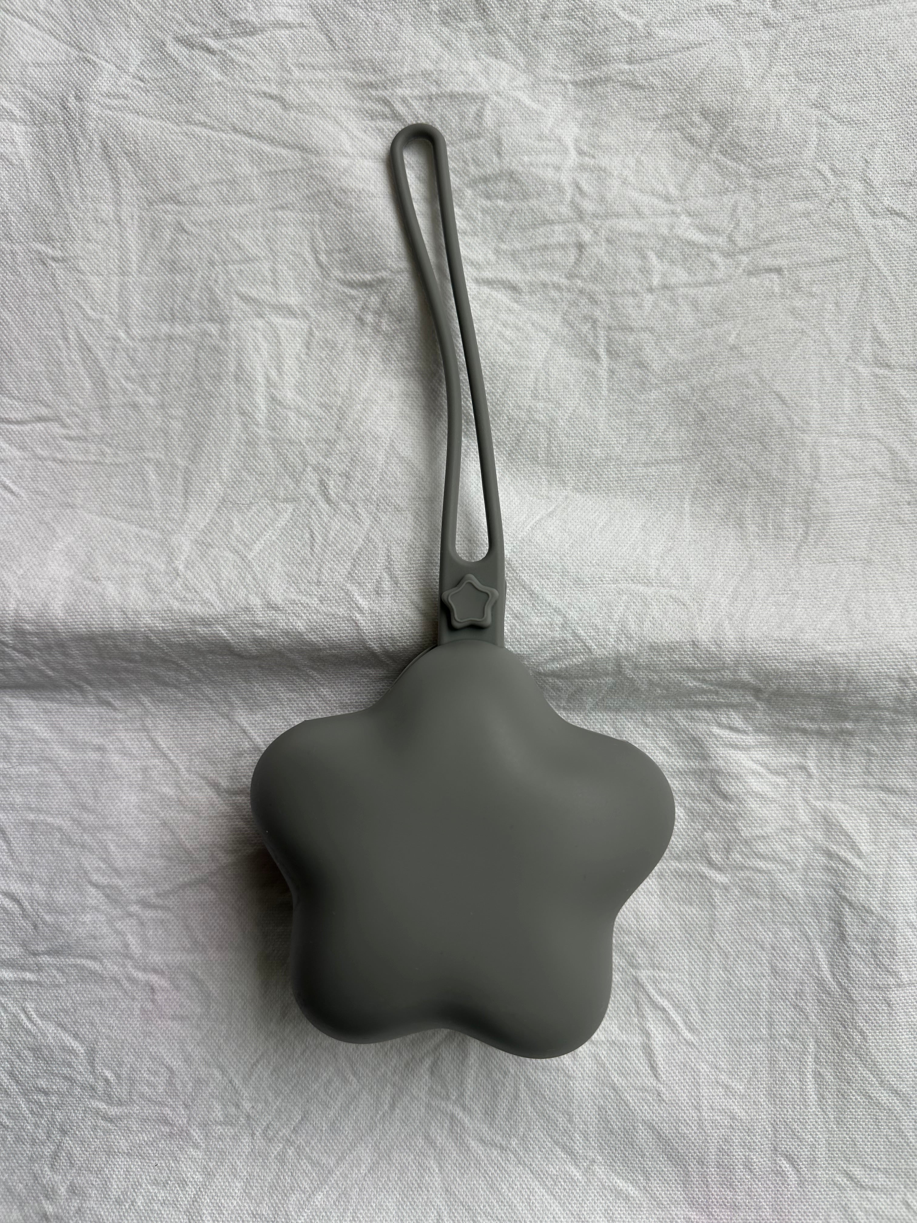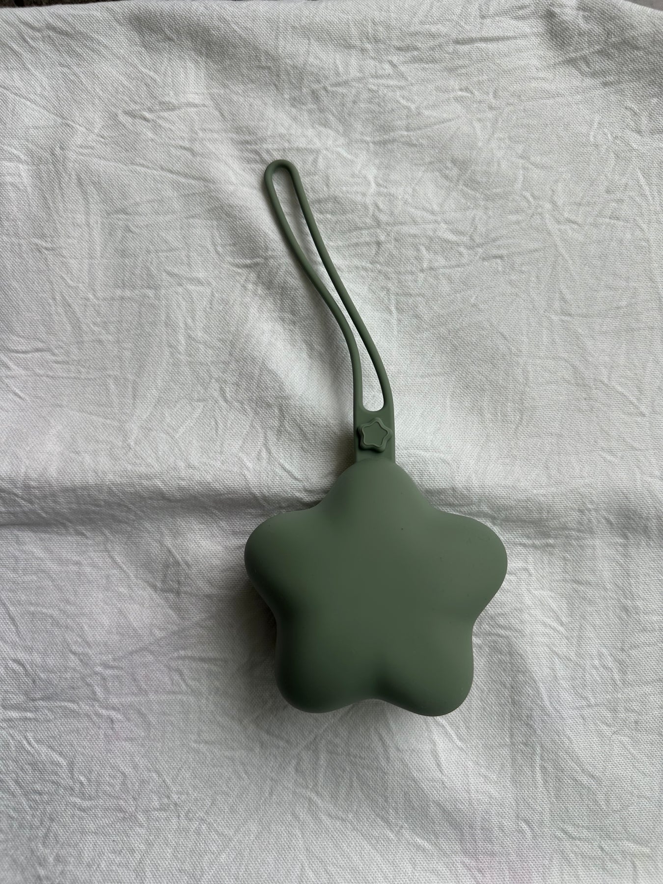 El estuche para guardar el chupón tiene un encantador diseño de estrella, que le da un toque dulce y divertido. Viene en un suave color verde militar, ideal para mantener el chupón limpio y protegido. Su tamaño compacto lo hace perfecto para llevarlo en la carriola o en la pañalera, asegurando que siempre esté a mano y listo para usarse.