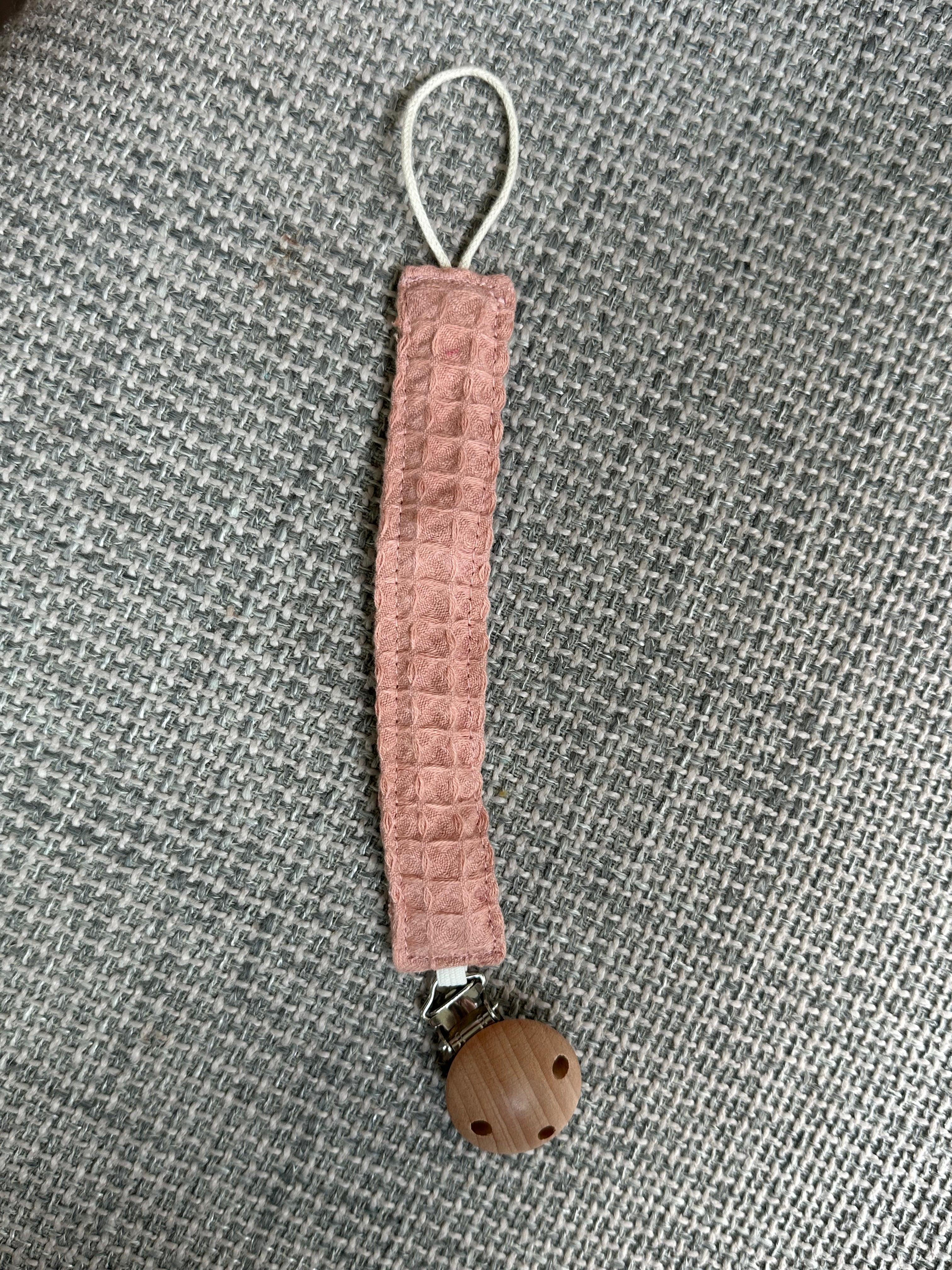 El porta chupones está elaborado en tela texturizada de gran suavidad y durabilidad. Su color gris neutro le da un toque moderno y elegante, perfecto para cualquier ocasión. Su diseño funcional mantiene el chupón limpio y accesible.