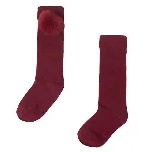 Calcetas con pompon vino
